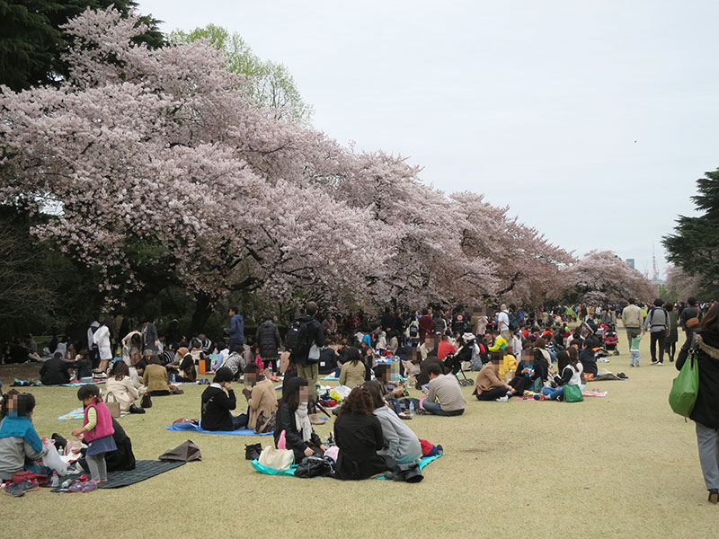 御苑に行ったら、花の近くは人がわんさか、