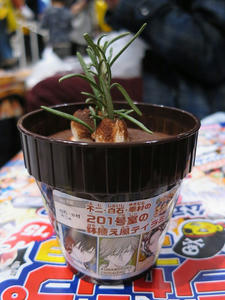 でその後は、殺センセーというよりコレははいハイキュー山口の「ふにゃポテ」として売ったほうがよくね?みたいなポテト食べたり、友人の生ぬるいシチューに絶望したり、結果として一番マシだったのが鉢植えティラミスなのはいかがなものかとか思いながら屋台村を堪能。