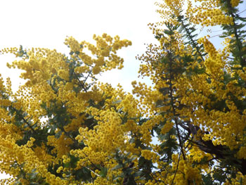 三月で気が付いたら近所の家のミモザがわっさわっさ咲いてました。ミモザがおしゃれに植えてある家って...なんかハイカラっすね...。