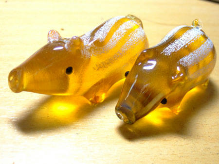 写真は地元の宿場町な観光地のガラス工房であまりに可愛かったので買ってしまった試作品うりぼう。
