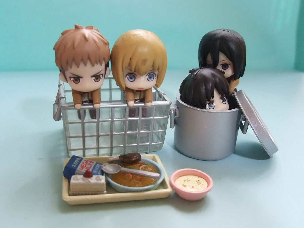 あ、2週間前へいちょだけ出せなかった進撃つまんでつなげてガチャですが、地元の若い友人の為に某所でバラで売ってるのを買いに行き、お掃除へいちょを高い金払って買ったのですよ。で、すぐ後にふと1回だけとか思って回したらおそうじへいちょが出ました......